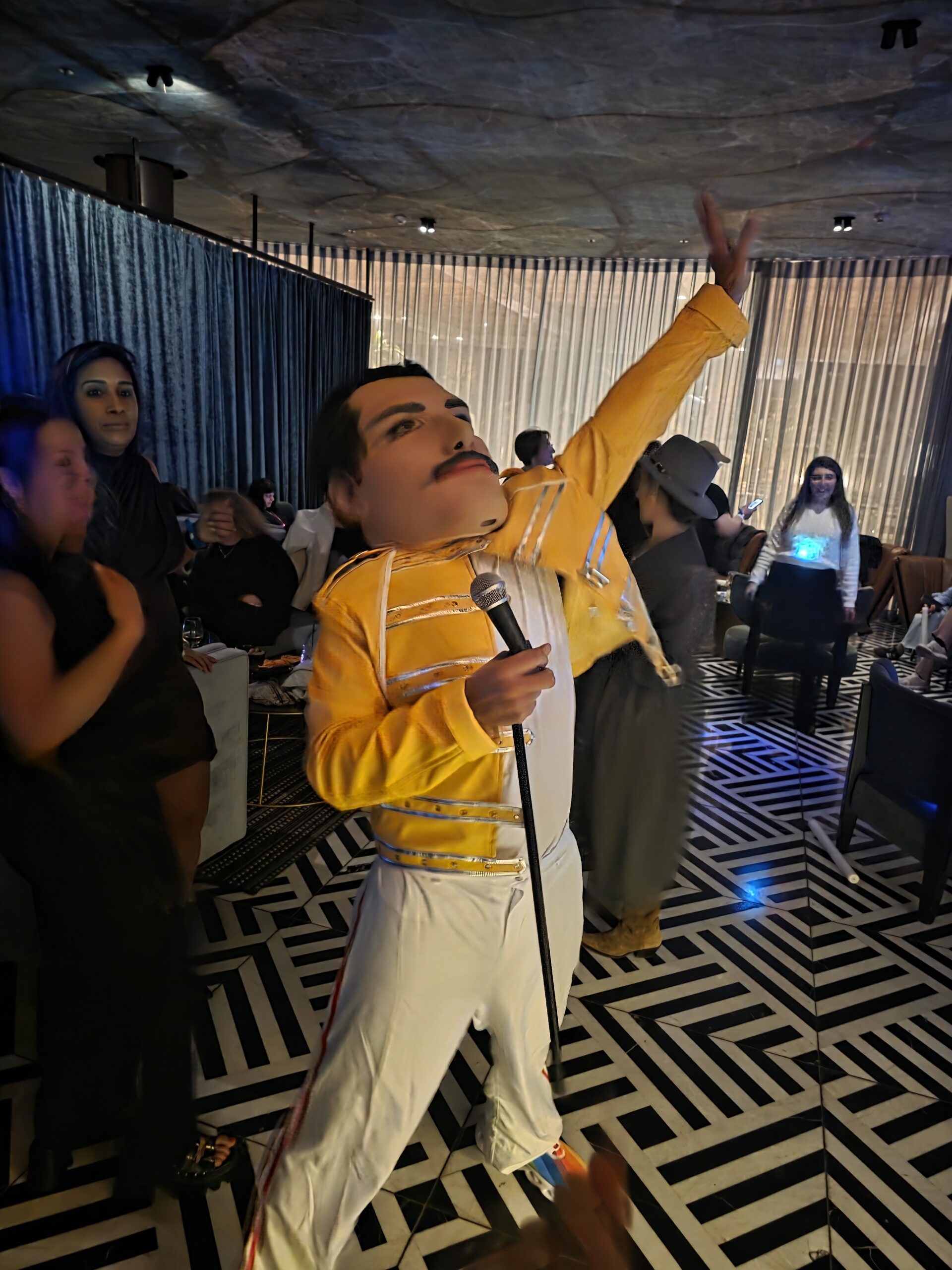 קבלת פנים לאירועים- פרדי מרקורי יקבל את פני האורחים בסגנון מלכותי ומקצועי, יוצר אווירה מיוחדת כבר מהכניסה לאירוע. עם התלבושות האיקוניות והתנהגות הכריזמטית, הוא יהפוך את רגע הכניסה לחוויה בלתי נשכחת.