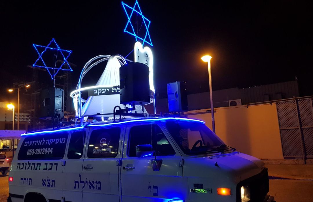 רכב מוסיקלי לתהלוכת הכנסת ספר תורה. הרכב כולל מערכת חשמל מיוחדת המובנת בתוכו על גג הרכב מובנים 4 רמקולים מוגברים חזקים במיוחד ,כך שמתקבלת במהלך התהלוכה מוסיקה גם מקדימה וגם מאחור מלמעלה בנויה קונסטרוקציה ענקית של לוחות הברית ומגני דוד שיוצרו במיוחד.